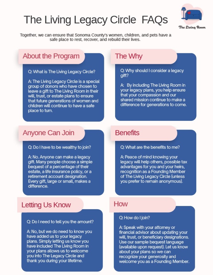By remembering The Living Room in your estate plans, you create a lasting legacy of compassion — helping future generations find shelter, support, and hope. Your gift ensures families experiencing hardship have a place to turn for nourishment, safety, and the chance to rebuild their lives with dignity.